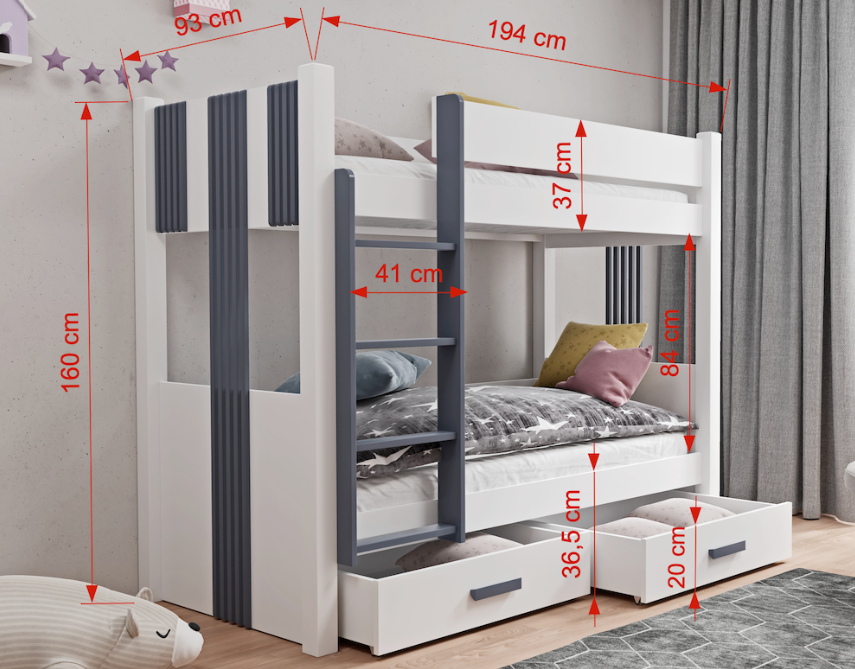 ! VAŽNO ! NA SLICI JE KREVET S LIJEVOM STRANOM. MOLIMO PRILIKOM NARUDŽBE UPISATI NA KOJOJ STRANI ŽELITE STEPENICE.