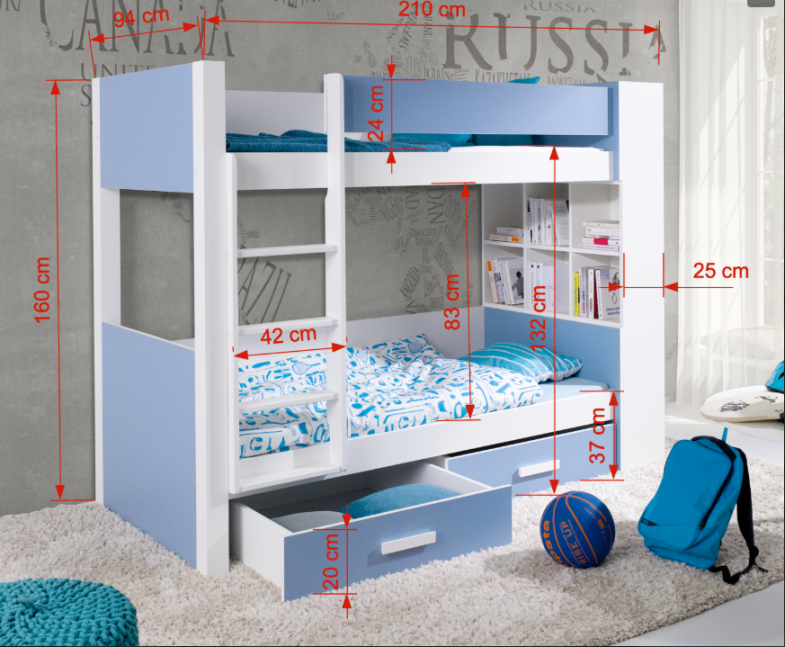 ! VAŽNO ! NA SLICI JE KREVET S LIJEVOM STRANOM. MOLIMO PRILIKOM NARUDŽBE UPISATI NA KOJOJ STRANI ŽELITE STEPENICE.