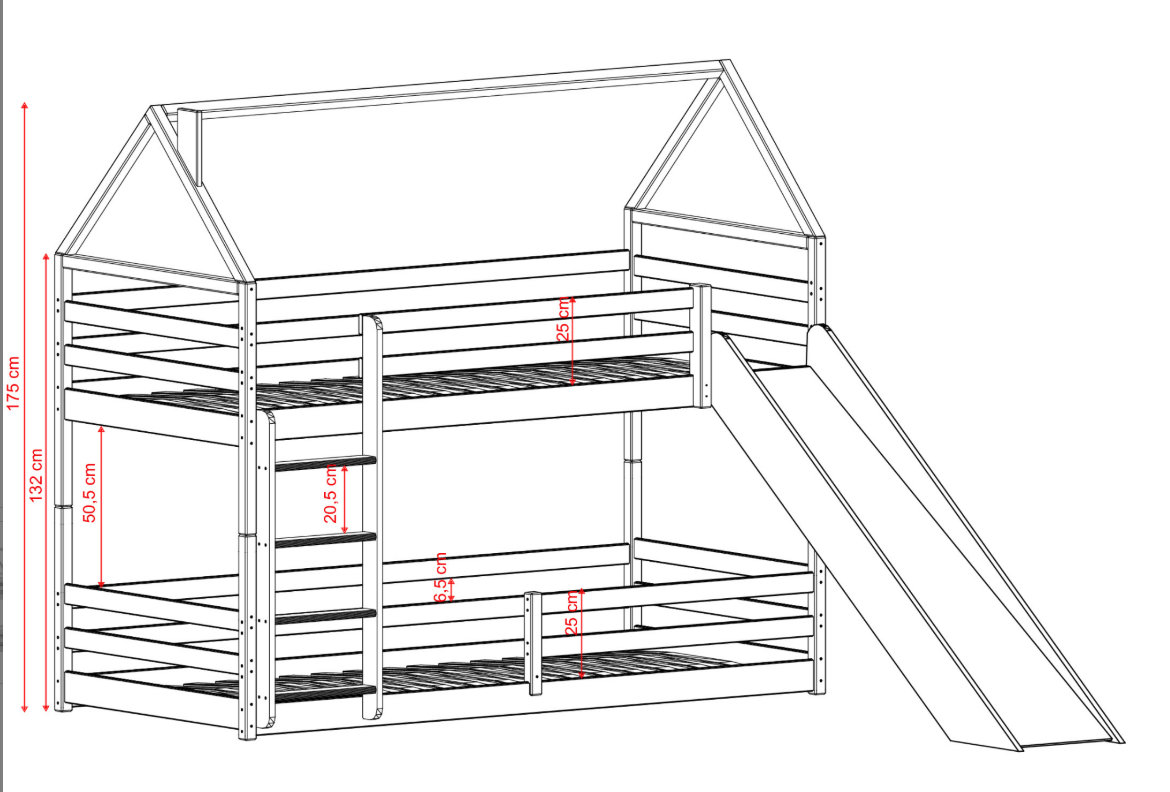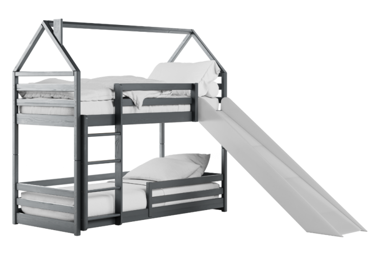 Krevet na kat PLAY privlači pažnju i stvara karakter sobe zahvaljujući svom jedinstvenom izgledu – to je krevet s toboganom.