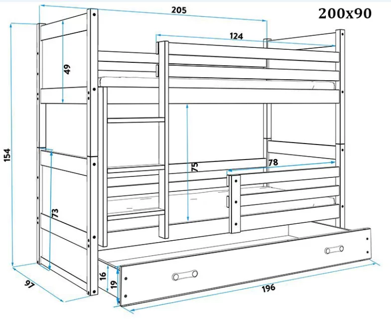 Moderan, kvalitetan i funkcionalan drveni dječji krevet na kat RICO.