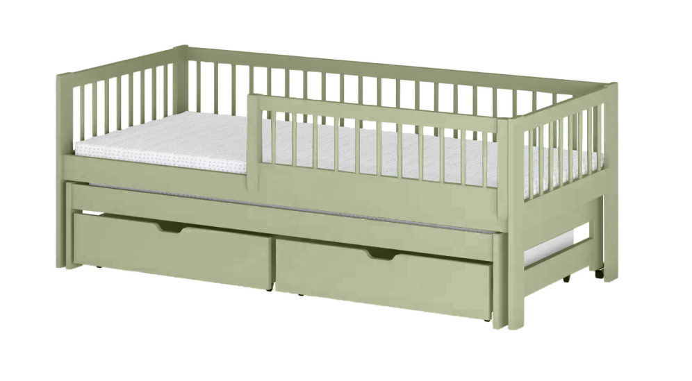 Krevet SOFTI je izrađen od punog borovog drveta, obojen lakovima vrlo visoke otpornosti na ogrebotine, dajući istovremeno učinak glatkoće. Završna obrada kod bojanja je na bazi vode te je u skladu s EN 71-3: 2013.