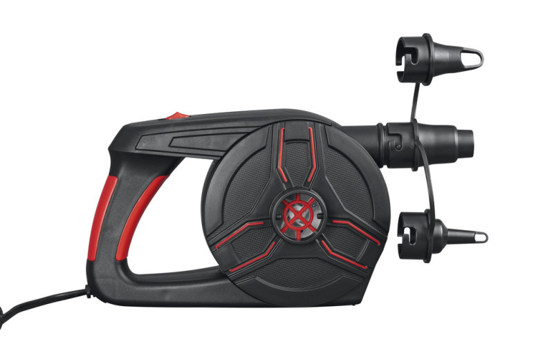Opremljena je setom univerzalnih nastavaka, pa pristaje na većinu dostupnih ventila, što je čini iznimno svestranim alatom. Izdržljiva konstrukcija i kvalitetni materijali jamče dugotrajnost, čak i pri intenzivnoj upotrebi. Dugi kabel povećava praktičnost, omogućujući rad čak i na udaljenosti od utičnice.