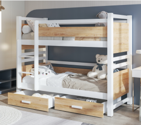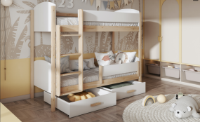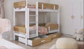 Novo Kreveti na kat Drveni dječji krevet na kat Janis s ladicom - bijeli - svijetlo drvo - razne dimenzije Šifra: 26-janis-svdrvo Već od 829,00 € Saznaj više